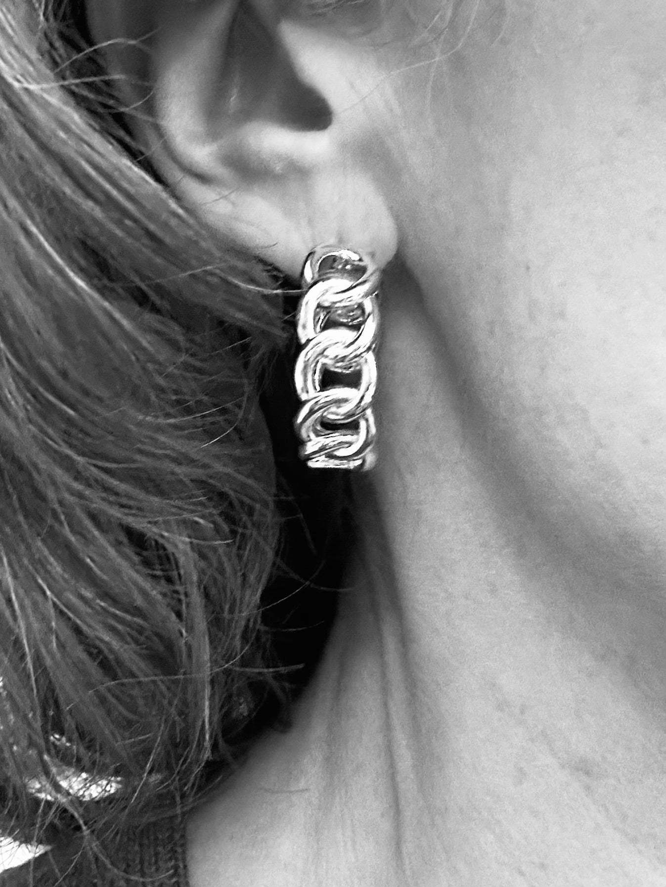 Bold yet refined, these Sculpted Cuban Link Hoops bring a modern edge to a timeless design. Their polished, interlocking links create a statement silhouette that balances strength and elegance, making them the perfect go-to for dressing up or elevating the everyday. Part of our Curated Collection, these limited-release earrings are selected to complement our handmade line and add versatile sophistication to your jewelry wardrobe.