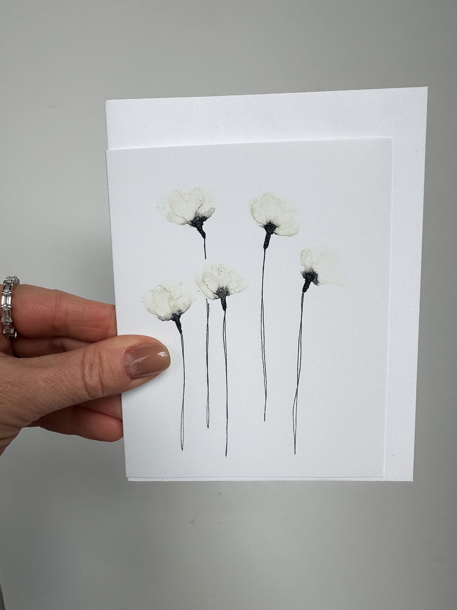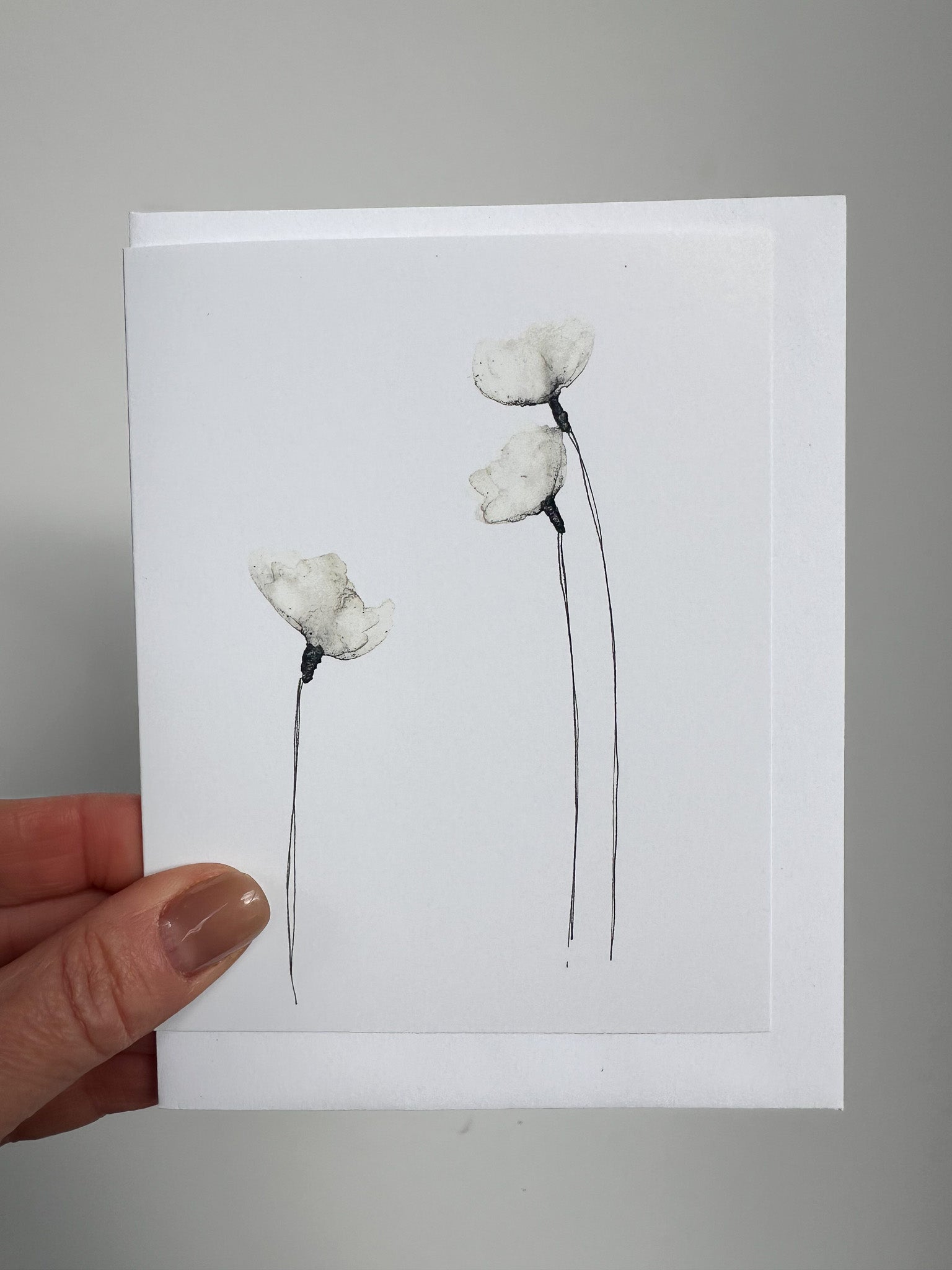 These greeting cards feature Vanessa’s original Arctic cotton flower paintings, created with earth pigment watercolours and printed in a standard 4.25 x 5.5” format. Each card is blank inside, includes an envelope, and is ready for your own note.