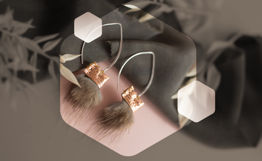 The products found in the physical store and the online store include the signature fur jewelry line, hand-forged copper jewelry with natural semi-precious gemstones, textile jewelry, housewares, and textile wall art as well as original paintings made with handmade earth pigment watercolours and botanical inks. We work with materials that are naturally coloured and create designs that are simple and understated which allows the texture and tone of the materials to be prominent.