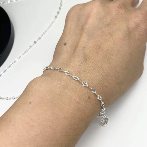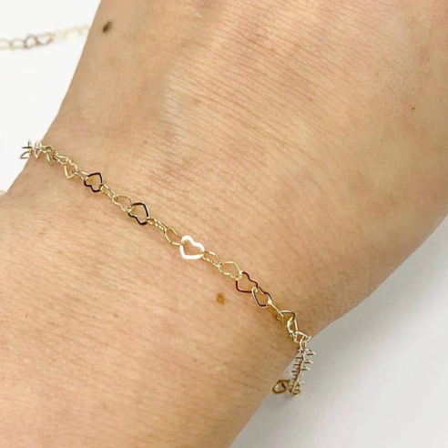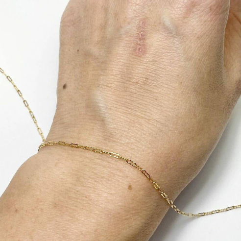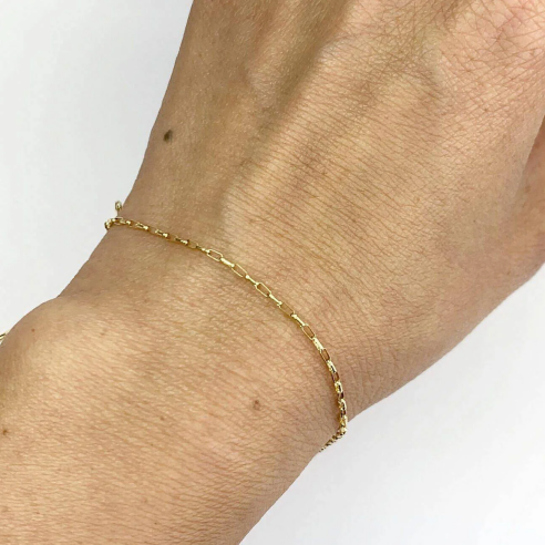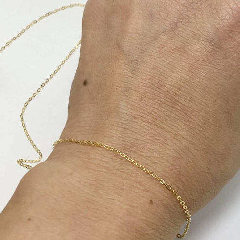 Choose from either 14k gold filled or sterling chain options. Welded onto your wrist while you wait!
