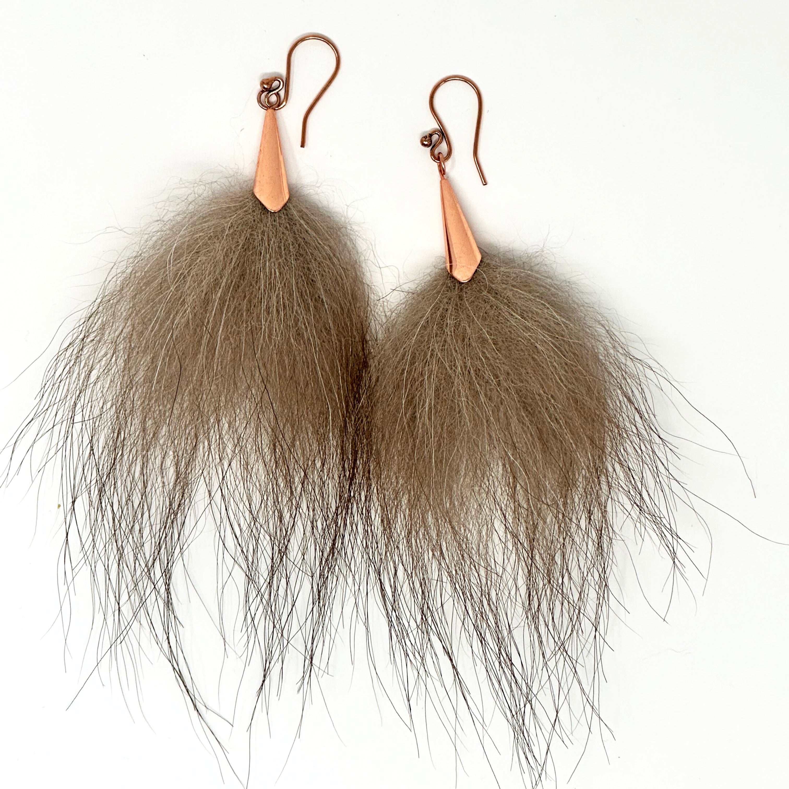 The Legacy Copper Cone earring was the first designs in the entire fur jewelry collection and it continues to be a perfect go-to style years after its genesis. The warm tone of the copper metal is flattering on everyone and the understated design lets the gorgeous texture of the wolf fur take centre stage. This design embodies our belief that life is just way too short for boring earrings!